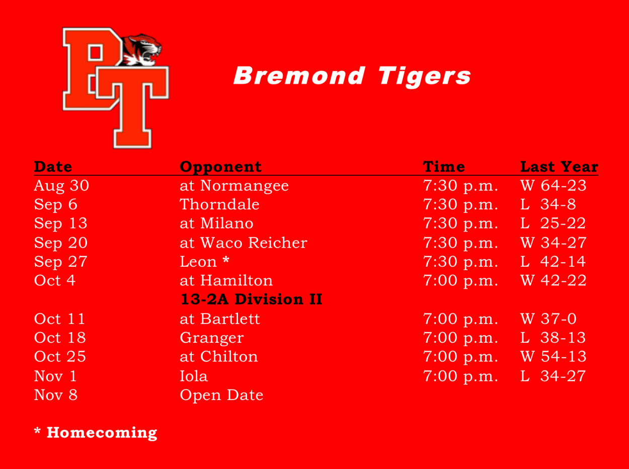 | Bremond | 4 | 0 | 12 | 2 | 592 | 322 |