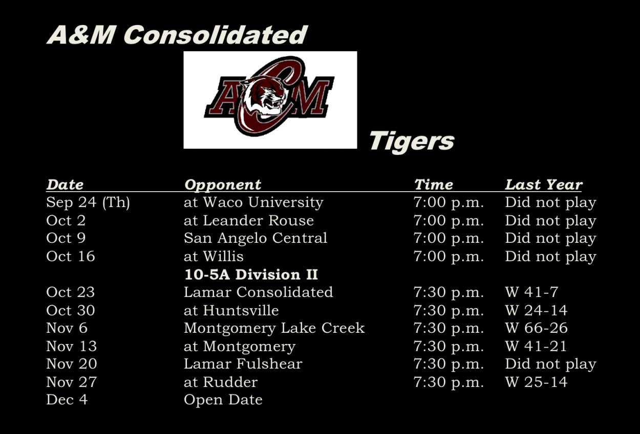| A&M Consolidated | 4 | 2 | 8 | 3 | 394 | 217 |