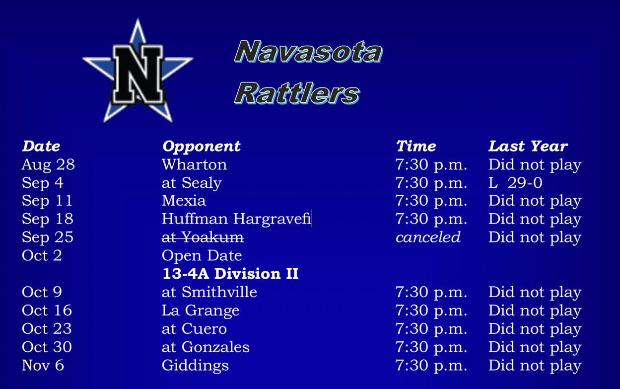 | Navasota | 4 | 1 | 8 | 4 | 370 | 310 |
