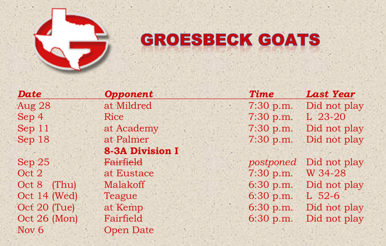 Fairfield at Groesbeck, postponed