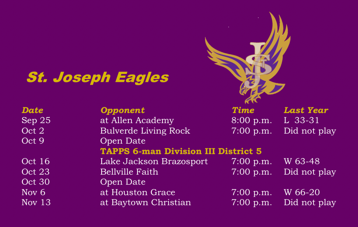 St. Joseph 47, Baytown Christian 0