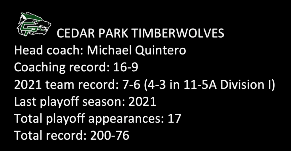 Conference 4A Division I – China Spring (14-1) vs. Boerne (15-0) 3:00 p.m.