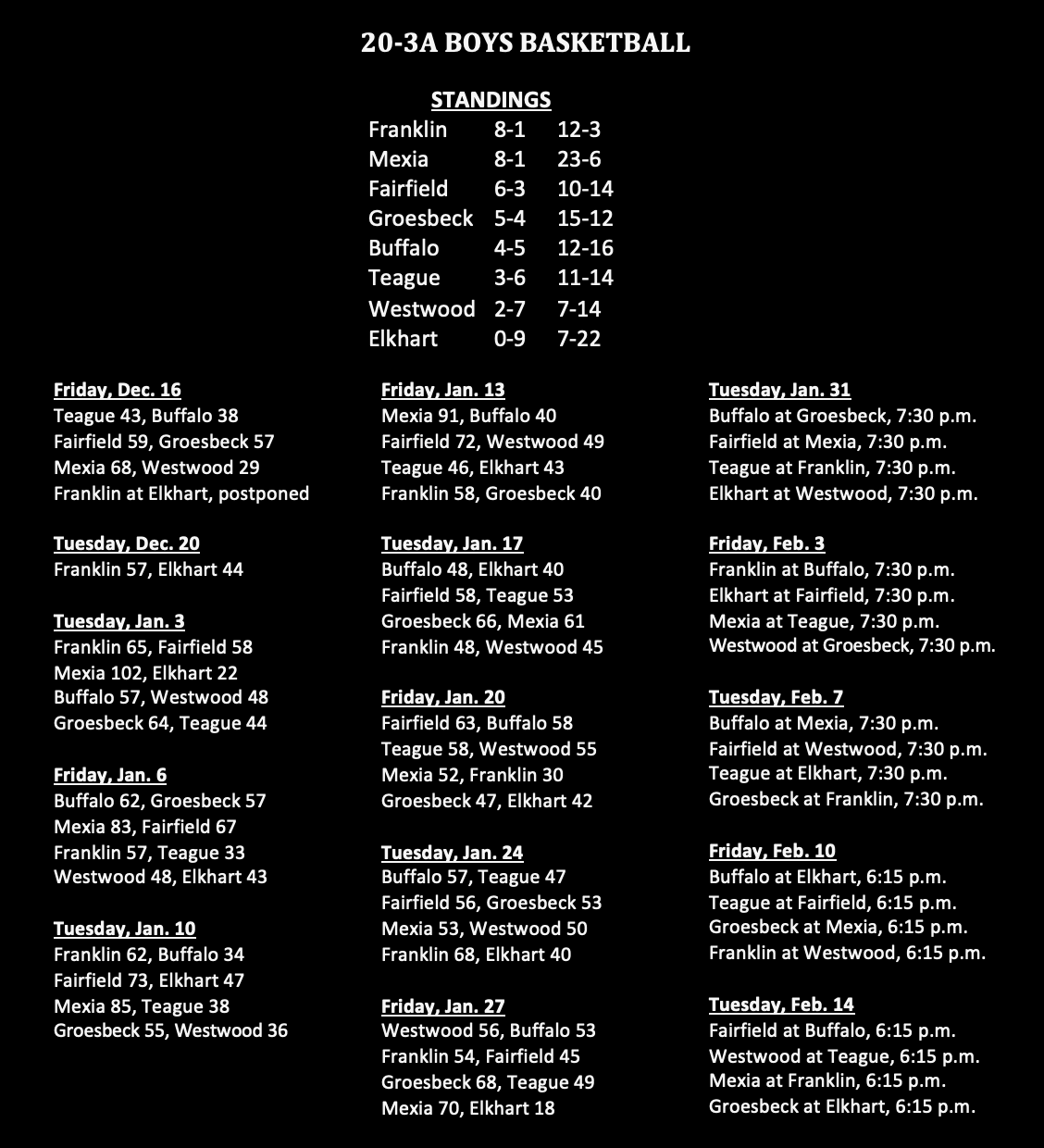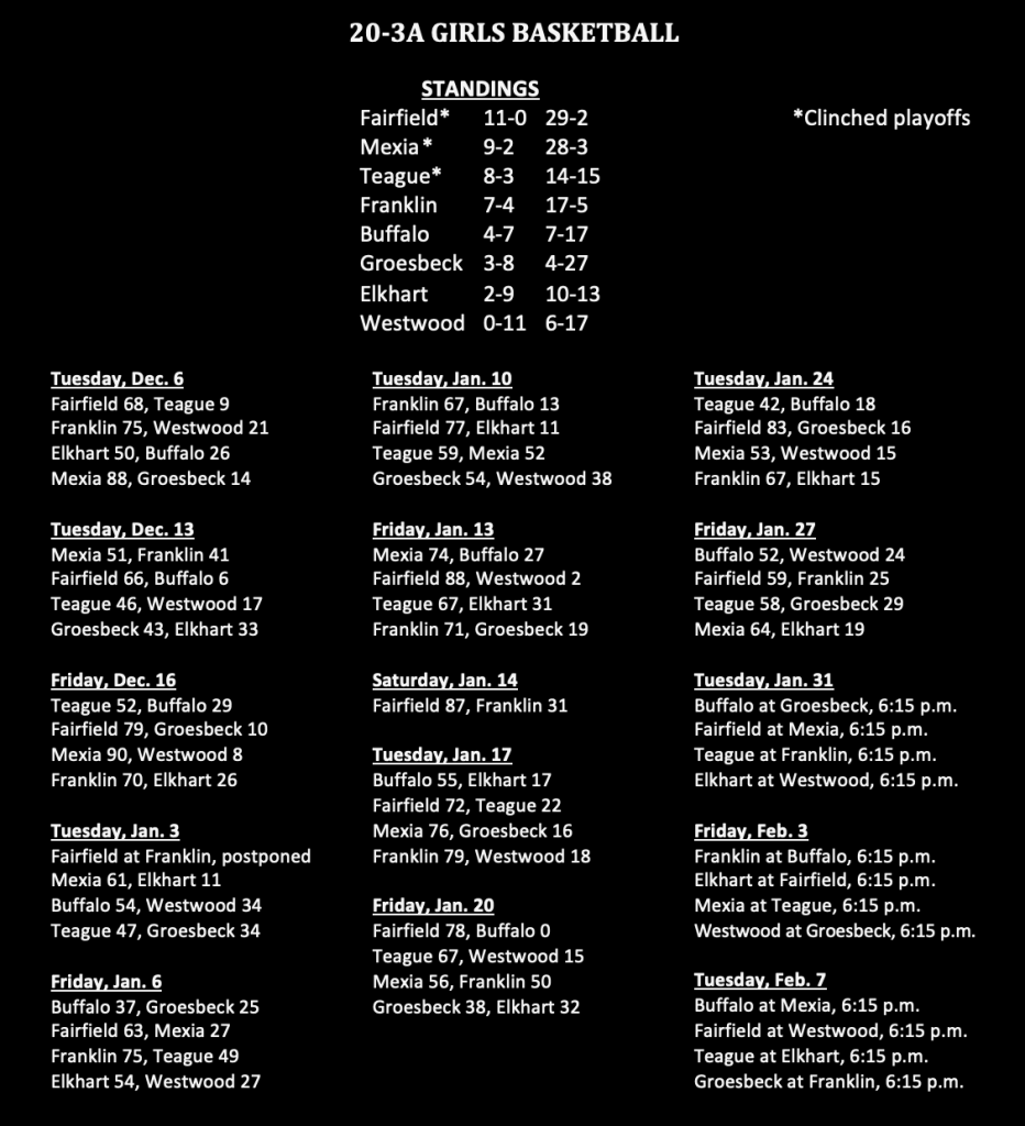 Written by David CampbellJanuary 29, 2023 District 20-3A basketball standings Here are the 20-3A basketball standings: Share this: Share on X (Opens in new window) X Share on Facebook (Opens in new window) Facebook Like Loading... Related Leave a comment Cancel reply Δ